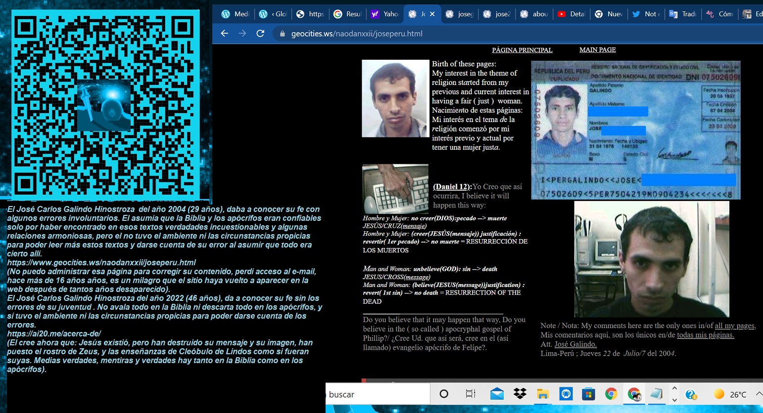 Nací en Perú, esa foto es mía, es de 1997, tenía 22 años, en ese tiempo estaba enredado en las intrigas de Sandra Elizabeth, una excompañera del instituto IDAT, estaba confundido sobre lo que le pasaba (Ella me acosó de una manera muy compleja y extensa para narrar en esta imagen, pero lo narro en la parte inferior de este blog: ovni03.blogspot.com y en este video: