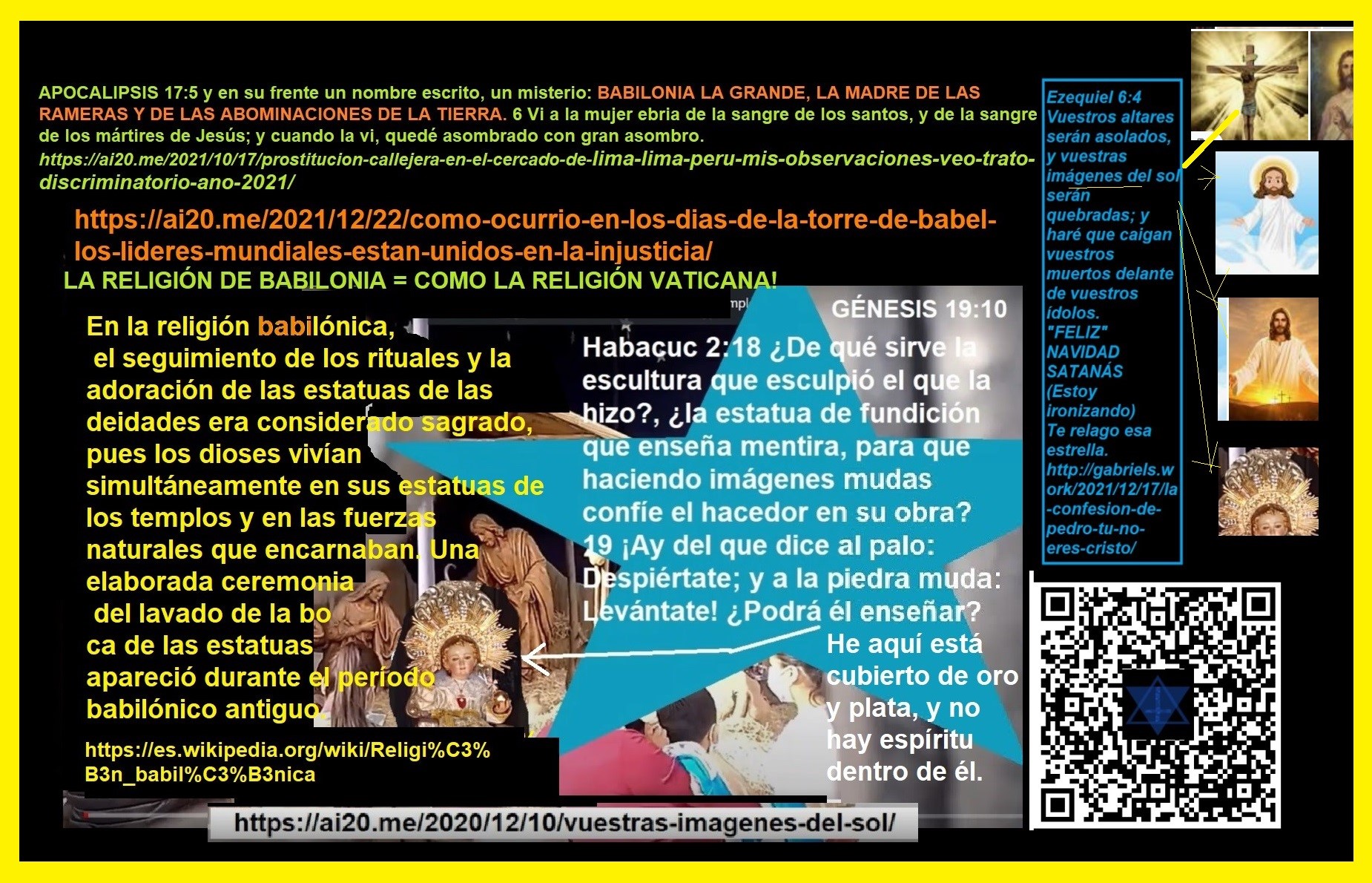 La gran ramera de Babilonia, que es la iglesia falsa creada por Roma, se ha considerado a sí misma «»la esposa del ungido del Señor»», pero los falsos profetas de esta organización que vende ídolos y palabras aduladoras no comparten los objetivos personales del ungido del Señor y de los verdaderos santos, porque los líderes impíos han elegido para sí mismos el camino de la idolatría, el celibato o la sacramentalización de matrimonios impíos a cambio de dinero. Sus sedes religiosas están llenas de ídolos, incluyendo falsos libros sagrados, ante los cuales se inclinan: