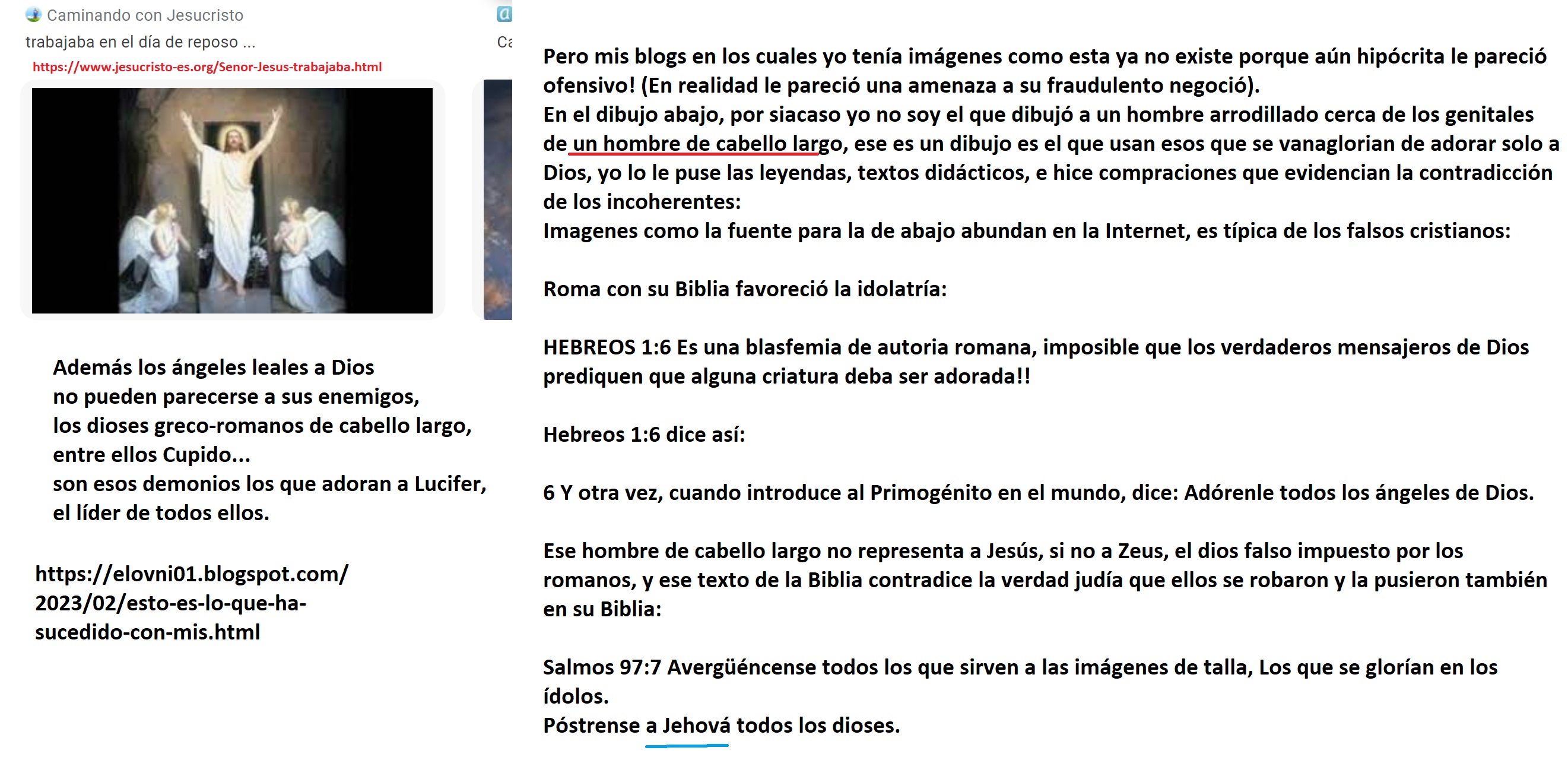 Hola, yo me enfoco en desacreditar mentiras romanas en la Biblia y en los apócrifos que se han hecho pasar como «palabra de Dios», un tema adyacente es esto de las razas, la Biblia contiene muchas medias verdades, incluso en el libro del Apocalipsis, y he llegado a esta conclusión por medio de comparaciones intertextuales, la gente por lo general es ignorante del contenido de la Biblia, por eso muchos de los que no hay leìdo ni el 2% se consideran a si mismos cristianos, yo he leído cerda del 90% de la Biblia y de los apócrifos durante los últimos años y así llegue a estas conclusiones: los romanos han presentado un evangelio distinto al verdadero, a un cristo distinto al verdadero y a unas circunstancias de su muerte distintas a las verdaderas cirscuntancias de su muerte, y para muestra un botòn, no fue traicionado por alguno de sus leales discípulos, todos ellos eran leales, y en los textos en esta imagen la lógica lo demuestra así:
