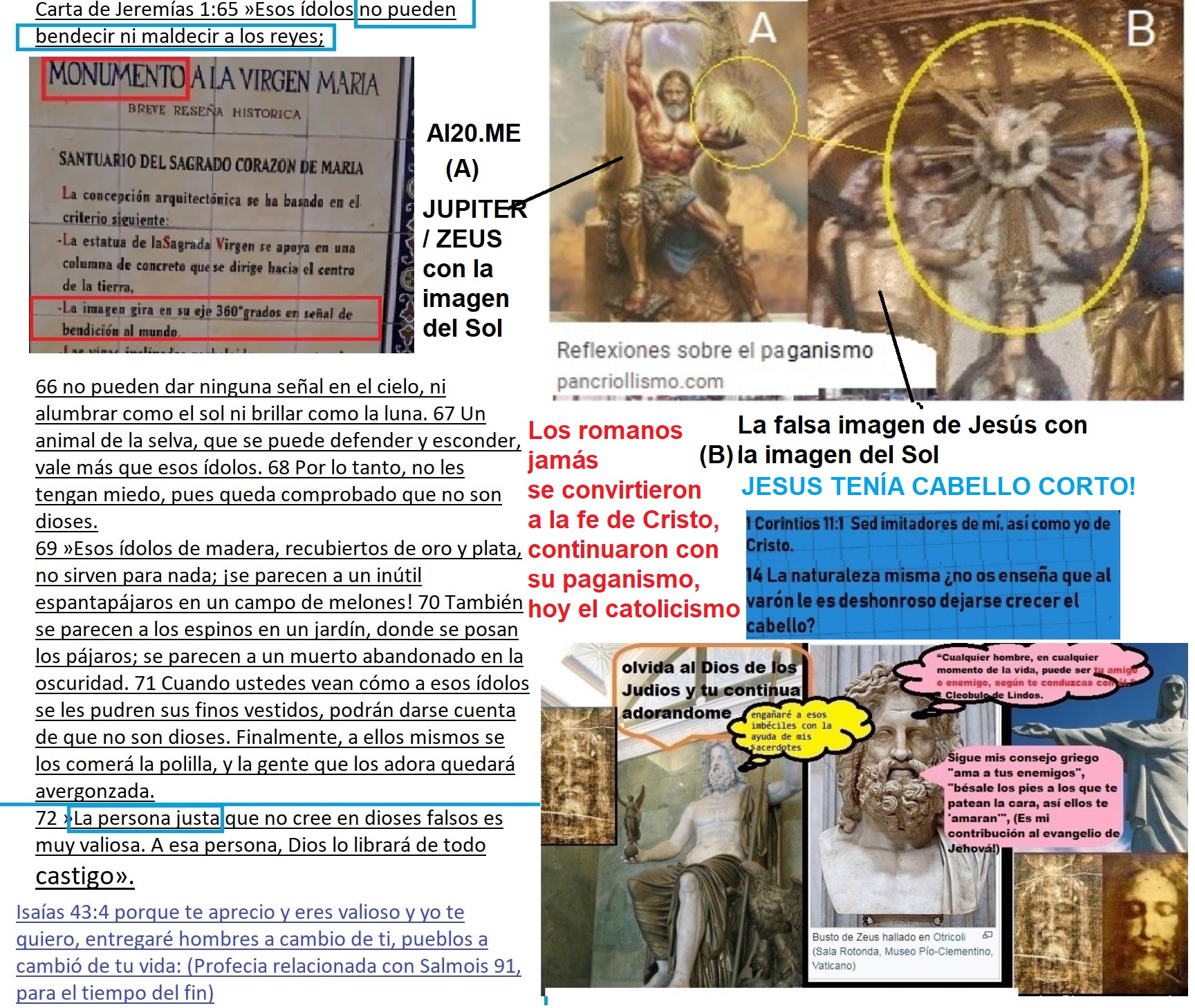 Como lo podrán leer en las imágenes didácticas arriba, los romanos han presentado no solo a un falso Cristo con cara de Zeus, también a un falso San Miguel arcángel con cara y ropa de perseguidor romano, las revelaciones que hago con inéditas, probablemente no tienen precedentes, y además son gratis, sin embargo la apatía general ante estos razonamientos no deja de maravillarme, tal como lo expreso en este video que acabo de subir a Youtube que se titula: