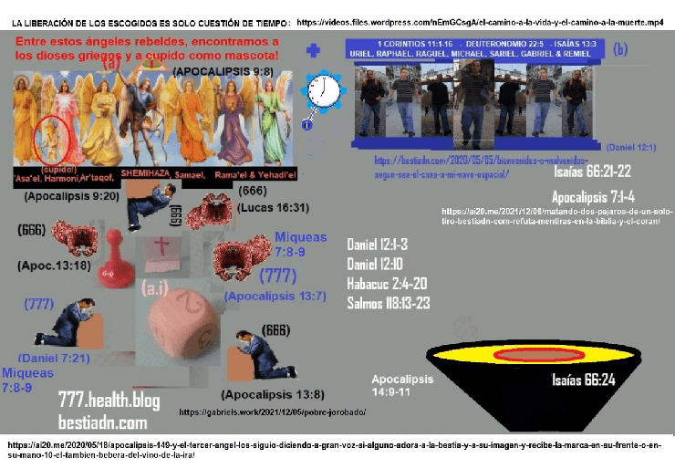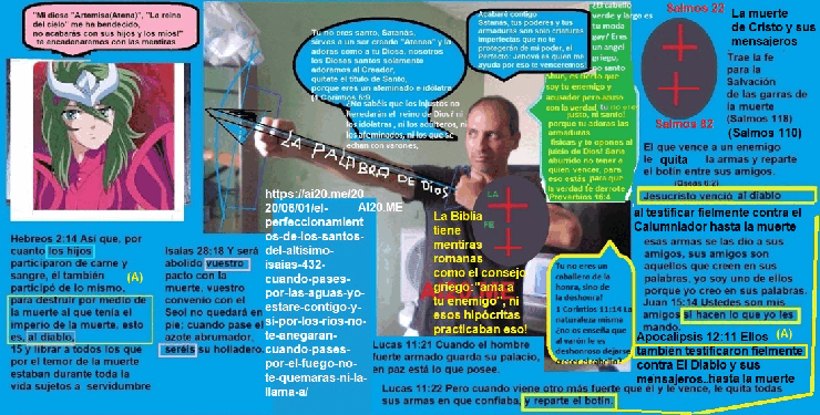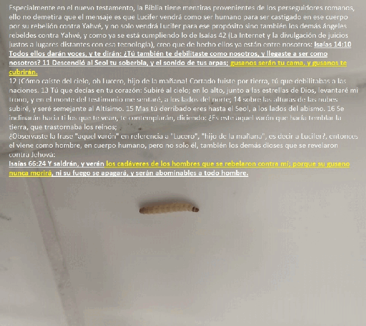 En este video https://www.youtube.com/watch?v=lsSKLvFCzxU&t=4431 la pizarra cayó sobre mi espalda, parece que al Diablo no le gusta Isaias 66:24 un mensaje creado a su medida que lo condena al infierno 66 4+2 = 666, escucha como se queja por no estar entre los 144k, parece un delincuente extranjero quejándose de que ni en Chile ni en Perú lo dejan entrar https://youtu.be/3EE9_tlqgjU?t=144 , pero como habran visto y oido, yo respondo insultos con insultos, no ofrezco la otra mejilla, no sigo doctrinas del Diablo hipócrita de Roma, «en 21 días fue derrotado en batalla y así será en la guerra (Daniel 10)…» https://youtu.be/lsSKLvFCzxU?t=4449