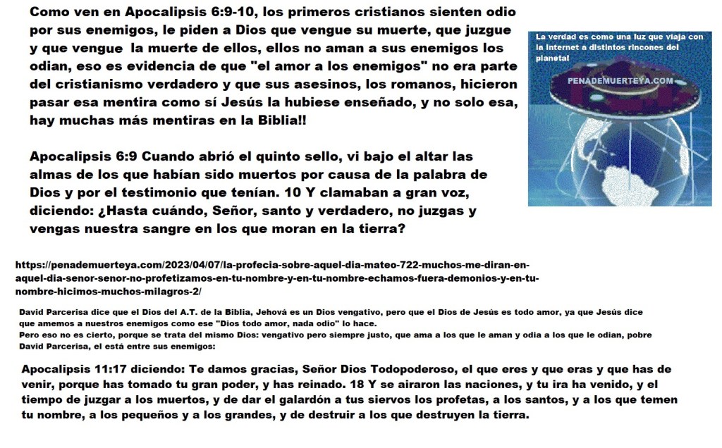 Como ves aquí, él destruye a sus enemigos, ¿dónde está entonces la «enseñanza del amor a los enemigos»?, no hay lugar para esa enseñanza simplemente porque Jesús nunca amó a sus enemigos y nunca predicó eso, sino que sus enemigos falsificaron sus mensajes para hacer Mensaje falso parte de la Biblia.