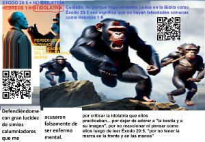 «Soy el héroe de la príncesa y eso le jode al villano de escamas al cual le digo: «Aleja tus estatuas de ella, infeliz idólatra rebelde!, la ley de mi Dios dice: Éxodo 20:5 No te inclinarás a las imágenes, ni las honrarás; porque yo soy Jehová tu Dios celoso. Y como no has respetado este mandamiento, has falsificado el evangelio, por eso la Biblia tiene mentiras de Roma, con las cuales a ella no la engañarás, serpiente antigua!!, la virgen justa creerá en mi testimonio y no en tus calumnias» https://eltestimoniodegabriel.link (https://gabriels.work) https://lavirgenmecreera.com (https://ellameencontrara.com)