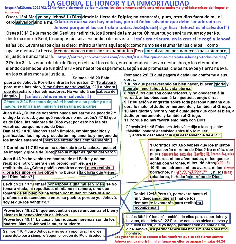 Mi enemigo está enamorado de la mentira (Isaías 28:15, Daniel 8:25), por eso habla a las estatuas palabras engañosas (Habacuc 2:18, Isaías 42:17 (Salmos 109:17-20), pero yo estoy enamorado de la verdad (Salmos 109:21-22, Proverbios 19:14), por eso escribo a una mujer real palabras de la verdad (Apocalipsis 12:1): “La luna debajo de tus pies significa que diosa griega Selene ha sido derrotada porque te ha odiado, porque eres fiel mientras ella es calumniadora, por eso quiso que nunca me encontraras ya que trató de destruirme, los dioses griegos siempre han sido nuestros enemigos (2 Macabeos 6:1 -2, Daniel 10:20-21)”, “El Sol que te alumbra es el Sol de la justicia (La información de la verdad es como una luz: Daniel 7:13-14, Malaquías 4:2-3, Proverbios 11 :9), su luz es como un par de alas para ti, el Sol bajo los pies del fiel mensajero que te informa (Apocalipsis 19:17), significa que el pueblo santo ha destruido, con la ayuda de Dios, la falsedad del imperio adorador del Sol: su engaño contra Dios en la Biblia, Biblia que hicieron cuando robaron los mensajes sagrados de los judíos leales a quienes habían matado, para luego acusarlos falsamente de haber predicado esas mentiras contra Dios: los romanos predicaron a una criatura como teniendo los atributos que sólo le pertenecen a Dios: decir: “Yo soy la verdad, yo soy el camino y yo soy la vida (Juan 14:6)” y luego decir “Yo soy la luz del mundo” (Juan 8:12), equivale a decir: “Adorad al Sol, adoradme a mí, porque soy Dios Sol pero he venido como hombre, no adoréis a Pedro, porque es sólo un hombre (Hechos 10:25), pero yo no soy un hombre solamente, soy Dios y debo ser adorado, os haría bien si me adoras (Lucas 17:15-18)”; el hijo que sirvió con lealtad a su padre Jehová hasta la muerte, como lo hicieron sus hermanos (Salmos 82:5-7) nunca podría haber dicho esas blasfemias, porque él sabía que el único salvador que había que adorar es Jehová (Oseas 13:4, Salmos 27:1), es absurdo poner a cualquier criatura al mismo nivel de Dios, además de eso, esa criatura que llaman Jesús, no es como Jesús realmente fue, el usurpador es un demonio de pelo largo (y el Vaticano ora a muchos demonios como él, porque los verdaderos ángeles masculinos de Dios nunca pedirían oraciones dirigidas a ellos o a imágenes, ni se verían como aquellos que Dios odia (Deuteronomio 22: 5)), el nombre Jesús significa “Jehová es el salvador”; No significa: “Yo soy Jehová”, pero el demonio de pelo largo (Deuteronomio 22:4, Isaías 14:12-13, Deuteronomio 32:42) tiene doctrinas opuestas al significado del nombre Jesús. La vida no desapareció cuando Jesús murió en la cruz (Salmos 22), la vida continuó, entonces Jesús no es la vida, el imperio adorador del Sol ha acusado falsamente a los santos de haber sido los autores de muchas estupideces como el amor a los malvados (Mateo 5:38-48), los malvados son considerados por los justos como enemigos a odiar, los justos sólo deben perdonar a otros justos, si alguna vez por ignorancia les causaron algún daño (Levítico 19:18), es común que las hienas y los lobos se reconcilien después de disputas entre ellos, el amor al “enemigo” funciona entre ellos porque son como hermanos, aunque a veces actúan como enemigos, por eso el lobo romano falsificó el evangelio a conveniencia de los malvados; pero los justos nunca deben perdonar a los malvados ni amarlos, tienen que saber identificarlos bien aunque vengan disfrazados de amigos, porque los malvados nunca se volverán justos, actúan como lobos disfrazados de ovejas, y todo lo que hacen es con malas intenciones contra los justos (Salmos 37:22, Proverbios 29:27, Deuteronomio 23:6, Daniel 12:10, Éxodo 21:14), en cambio, los justos nunca hicieron nada con malas intenciones precisamente porque son justos, y como tales aman la justicia y Dios solo los ama a ellos, por eso Dios ha enviado a sus santos ángeles solo a favor de ellos, porque cuando Miguel viene, no viene solo, cuando Miguel se levanta contra el imperio romano, ahora un imperio de la religión idólatra, Miguel no se levanta solo contra ellos, yo estoy aquí para ayudarlo, yo soy Gabriel, la justicia es mi fortaleza, mi Dios es la justicia (Salmos 118:14, Éxodo 21:14, Proverbios 29:27, Salmos 139:19-22, Génesis 3:13-15, Apocalipsis 16:6, Salmos 5:1-12, Daniel 12:1-3, Mateo 21:33-44 (Salmos 118:15-25, Salmos 91:1-16)). https://ntiend.me/2023/08/16/la-encarnacion-y-la-caida-de-lucifer-en-la-condenacion-eterna-los-angeles-rebeldes-vuelven-a-encarnar-en-cuerpos-humanos-pero-para-ser-castigados-en-ellos/