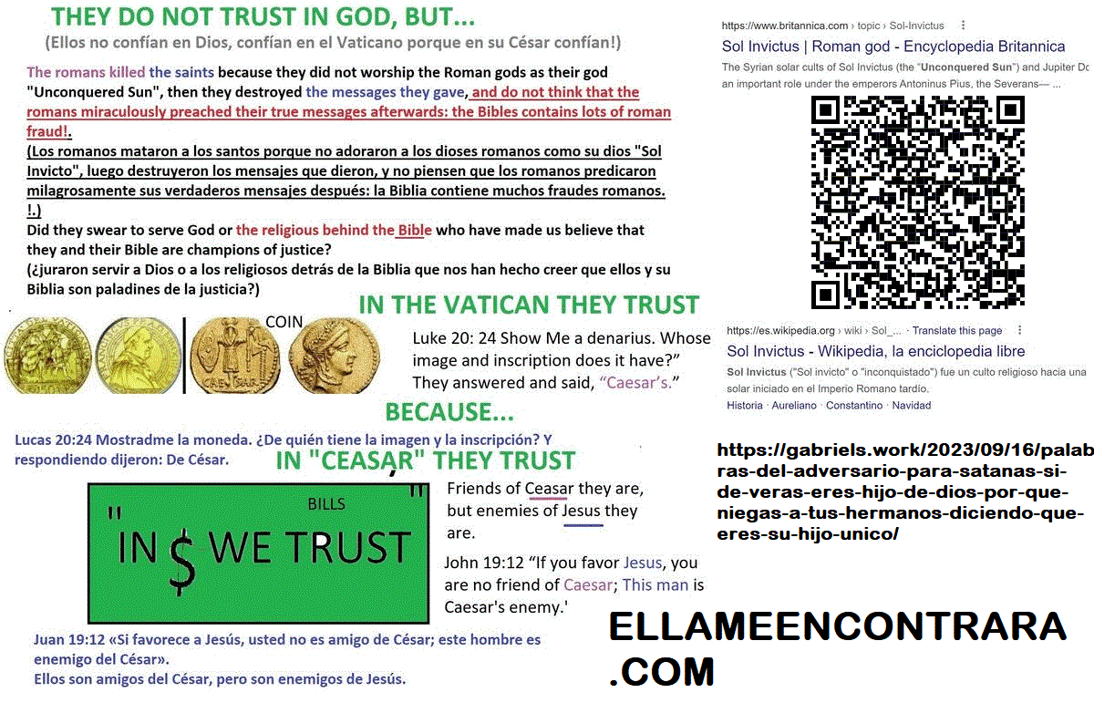«¿Quién es responsable de la maldad, «»Satanás»» o la persona que comete la maldad? No te dejes engañar por justificaciones estúpidas porque «»el Diablo»» al que culpan de sus propias malas acciones en realidad son ellos mismos. La típica excusa de la persona religiosa perversa: «»Yo no soy así porque no soy yo quien hace este mal, sino el Diablo que me ha poseído quien hace este mal.»» Los romanos, actuando como «»Satanás»», crearon contenido que también hicieron pasar por leyes de Moisés, contenido injusto para desacreditar el contenido justo: La Biblia no solo contiene verdades, también contiene mentiras. Satanás es un ser de carne y hueso porque significa: el calumniador. Los romanos calumniaron a Pablo atribuyéndole la autoría del mensaje de Efesios 6:12. La lucha es contra carne y sangre. Números 35:33 menciona la pena de muerte contra carne y sangre, los ángeles enviados por Dios a Sodoma destruyeron carne y sangre, y no «»huestes espirituales de maldad en las regiones celestiales.»» Mateo 23:15 dice que los fariseos convierten a sus seguidores en personas aún más corruptas que ellos, sugiriendo que alguien puede volverse injusto por influencia externa. En cambio, Daniel 12:10 dice que los injustos seguirán actuando con injusticia porque es su naturaleza, y solo los justos comprenderán el camino de la justicia. La falta de armonía entre estos dos mensajes muestra que algunas partes de la Biblia entran en contradicción, lo que pone en duda su veracidad absoluta. https://naodanxxii.wordpress.com/wp-content/uploads/2025/03/idi01-the-plot.pdf .» «El imperio Romano, Bahira, Mahoma, Jesús y el judaísmo perseguido. El nacimiento y la muerte de cuarta bestia. La alianza greco-romana por los mismos dioses. El Imperio seléucida. Cuidado con creer en el evangelio del anticristo (Buenas noticias para los injustos, aunque falsas) Si quieres salvarte del engaño del adversario de la justicia, considera que: Para rechazar el falso evangelio de Roma, acepte que si Jesús fue justo entonces no amó a sus enemigos, y si no fue hipócrita entonces no predicó el amor a los enemigos porque no predicaba lo que no practicaba: Proverbios 29:27 Los justos odian a los injustos, y los injustos odian a los justos. Esto es parte del evangelio adulterado por los romanos para la Biblia: 1 Pedro 3:18 Porque Cristo murió una vez por los pecados, el justo por los injustos, para llevarnos a Dios. Ahora mire esto que desmiente esa calumnia: Salmo 118:20 Esta es la puerta de Jehová; los justos entrarán por ella. 21 Te daré gracias porque me has escuchado y has sido mi salvación. 22 La piedra que rechazaron los constructores se ha convertido en la piedra angular. Jesús maldice a sus enemigos en la parábola que predice su muerte y regreso: Lucas 20:14 Pero cuando los viñadores vieron esto, discutieron entre sí, diciendo: Éste es el heredero; Venid, matémoslo, para que la herencia sea nuestra. 15 Entonces lo echaron de la viña y lo mataron. ¿Qué les hará entonces el dueño de la viña? 16 Él vendrá y destruirá a estos viñadores y dará la viña a otros. Cuando lo oyeron, dijeron: ¡De ninguna manera! 17 Pero Jesús, mirándolos, dijo: ¿Qué, pues, es esto que está escrito: La piedra que desecharon los constructores se ha convertido en la piedra angular? Él habló de esta piedra, de la piedra de la pesadilla del rey de Babilonia: Daniel 2:31 Tú, oh rey, veías, y he aquí una gran imagen. Esta imagen, que era muy grande, y cuya gloria era muy sublime, estaba en pie delante de ti, y su aspecto era terrible. 32 La cabeza de esta imagen era de oro fino; su pecho y sus brazos, de plata; su vientre y sus muslos, de bronce; 33 sus piernas, de hierro; sus pies, en parte de hierro y en parte de barro cocido. 34 Estabas mirando, hasta que una piedra fue cortada, no con mano, e hirió a la imagen en sus pies de hierro y de barro cocido, y los desmenuzó. 35 Entonces fueron desmenuzados también el hierro, el barro cocido, el bronce, la plata y el oro, y fueron como tamo de las eras del verano, y se los llevó el viento sin que de ellos quedara rastro alguno. Mas la piedra que hirió a la imagen fue hecha un gran monte que llenó toda la tierra. La cuarta bestia es la alianza de los líderes de todas las falsas religiones amigables con el fraude romano denunciado. El Cristianismo y el Islam dominan el mundo, la mayoría de los gobiernos o juran por el Corán o por la Biblia, por ese simple motivo, aunque los gobiernos lo nieguen, son gobiernos religiosos que se someten a las autoridades religiosas que están detrás de esos libros por los cuales juraron. Aquí les voy a mostrar la influencia romana en los dogmas de estas religiones y como distan mucho de los dogmas de la religión que perseguía Roma, Además, lo que les voy a mostrar no es parte de la religión que hoy se conoce como Judaísmo. Y si a esto le sumamos la fraternidad de los líderes del Judaísmo, Cristianismo e Islam, hay suficientes elementos para señalar a Roma como la creadora de los dogmas de estas religiones, y que la última religión mencionada no es la misma que el Judaísmo que perseguía Roma. Sí, estoy afirmando que Roma creó el cristianismo y que persiguió un Judaísmo diferente al actual, los líderes leales del Judaísmo legítimo jamás darían abrazos fraternales a difusores de doctrinas idólatras. Es evidente que no soy cristiano, ¿entonces porque cito pasajes de la Biblia para dar sustento a lo que digo?, pues porque no todo en la Biblia pertenece exclusivamente al cristianismo, parte de su contenido es el contenido de la religión del camino de la justicia que fue perseguido por el imperio romano por ser contrario al ideal romano de hacer que «Todos los caminos conduzcan a Roma (Es decir, que esos caminos favorezcan los intereses imperiales), por eso tomo algunos pasajes de la Biblia para sustentar mis afirmaciones. Daniel 2:40 Y el cuarto reino será fuerte como hier