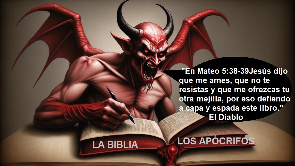 “Lee este libro y obedece; en Mateo 5 :38-39 Jesús dijo que me ames, que no te resistas y que me ofrezcas tu otra mejilla, por eso defiendo a capa y espada este libro.»