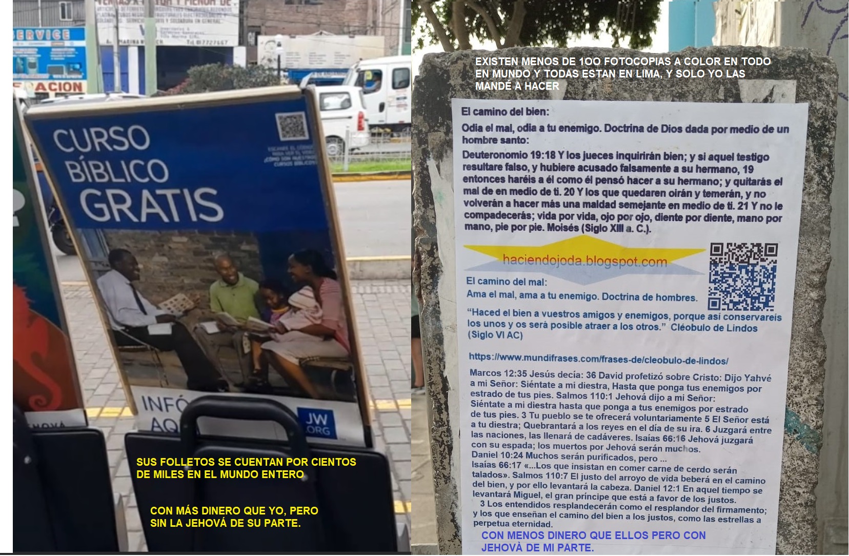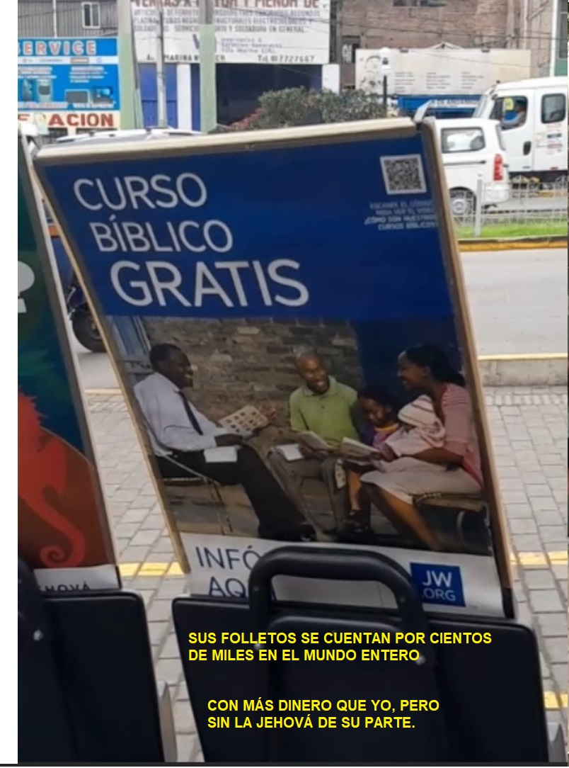 A la izquierda, los falsos testigos de Jehová, sus folletos se cuentan por cientos de miles por todo el mundo, tienen más dinero que yo pero no tienen a Jehová de su parte.