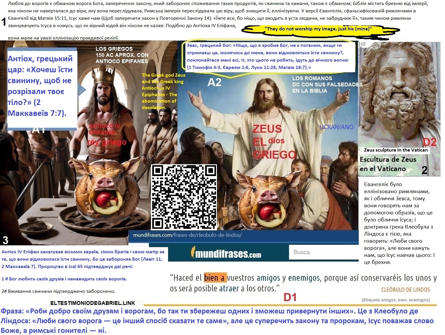 No soy un defensor de la Biblia, sino un analista de ella, debido a sus graves contradicciones. En busca de justicia verdadera. Cuando los falsos testigos relatan sus actos, una de las señales más claras de su mentira es la incongruencia de sus propias palabras. Tienen miedo a los debates argumentados; por eso huyen de ellos. Exigen sumisión en la creencia ciega, porque la razón jamás los defenderá. Demonizan a sus críticos, atacan al que habla con coherencia, pero nunca refutan sus argumentos, porque saben que son irrefutables. Pensar si realmente se puede caminar sobre el mar te hace dudar, y dudar —según ellos— te aparta de Dios. Así te enseñan a no pensar, a creer sin razón. Porque una mente que no pregunta obedece… y una que obedece sin pensar es la más fácil de engañar. «Según podemos inferir después de leer Isaías 63: 3-5, Isaías 11: 1-5 y Apocalipsis 19: 11-19, ¿no defiende el jinete del caballo blanco el “ojo por ojo”? Si reconoces que es así, entonces, ¿Quién es ese hombre de cabello largo que extrañamente se asemeja al dios griego Zeus y trae una doctrina de amor a los enemigos que, curiosamente, es la frase de un griego llamado Cléobulo de Lindos? ¿No crees que él caerá en el mar de fantasías que inventó en boca de quienes hicieron pasar sus palabras como las de Dios? El amigo fiel merece el amor de los fieles, ¿pero el enemigo también? ¿Crees que eso lo dijo realmente el amigo fiel, o el infiel Imperio Romano que lo persiguió? ¿Acaso puede el injusto volverse amigo del justo? Si fuese así, ¿por qué Daniel 12: 10 dice lo que dice, y por qué el jinete del caballo blanco no hace la paz con ellos, en vez de hacer la guerra contra ellos? Si te hice pensar… eso no le gustó a los falsos testigos que te mencioné al inicio. Ella me encontrará, la virgen de la puerta me creerá… Leer y entender https://lavirgenmecreera.com/el-mensaje-principal-the-main-message/ Decir que siquiera uno de los santos se decidió por el celibato y lo llamó “don” es una vil calumnia de la serpiente encarnada en los falsos santos que Roma introdujo secretamente para destruir la verdadera religión. No consentiré malos pensamientos, como aquellos que me hagan creer que es imposible desmentir con éxito aquella calumnia del Imperio Romano y sus falsos santos, quienes nos dicen que la gloria de la recompensa en el reino de los cielos consistirá en hombres justos solos, en lugar de estar unidos en matrimonio con mujeres, según la acusación en Mateo 22:30. Tampoco aceptaré aquella mentira que dice que los santos renunciarían a la gloria del matrimonio con mujeres para abrazar el celibato (1 Corintios 7:1 y 1 Corintios 7:9-10). Ni aceptaré la calumnia que nos dice que ellos concibieron pensamientos impuros, como aquellos en Mateo 5:11 y 1 Timoteo 4:1-6, donde se los acusa de promover el consumo de alimentos que Dios llamó impuros y prohibió para siempre, como la carne de cerdo, de mariscos o de murciélago. Ni consentiré que se crean mentiras como aquellas en Lucas 23:34 y Efesios 3:7, que nos dicen que los justos amaron a sus enemigos y murieron predicando el amor inmerecido. En este sentido, si eso fuese verdad, ¿por qué en Apocalipsis 6 ellos piden venganza contra quienes los mataron? Hay una directa contradicción entre Hechos 7:57-60 y Apocalipsis 6:9-10, porque una de las partes es la mentira del enemigo de ellos. Si Dios dictó el ojo por ojo contra los enemigos de los justos en Deuteronomio 19:20-21, es porque eso es justicia, ya que la justicia consiste en dar a cada cual su merecido; y el Imperio Romano fue todo, menos un imperio justo. Este blog tiene dos dominios que evocan estos mensajes: “ella me encontrará” y “la virgen me creerá”, porque quiero reflejar mis deseos y, de paso, defender los deseos de los hombres justos, expresados con claridad aquí: 1 Corintios 11:7 – La mujer es la gloria del hombre. Levítico 21:13-15 – Tomará por esposa a una mujer virgen. No tomará viuda, ni repudiada, ni infame, ni ramera, sino tomará de su pueblo una virgen por mujer, para que no profane su descendencia en sus pueblos; porque yo Jehová soy el que los santifico. A diferencia de los impostores, quienes adoran a los mismos antiguos dioses romanos —Marte, el Sol, Artemisa, Júpiter— pero por medio de estatuas casi idénticas y de otros nombres, los verdaderos santos consideraban conseguir una buena esposa una bendición: Proverbios 18:22 – El que halla esposa halla el bien, y alcanza la benevolencia de Jehová. La Biblia contradice la Biblia porque Roma contradijo la religión que persiguió y cambió muchas cosas para llamar a mucho de lo bueno “Antiguo Testamento” y a su helenismo “Nuevo Testamento”. El “ojo por ojo” justificado, ellos lo cambiaron por “ofrece el otro ojo a tu enemigo”, pues el enemigo nunca cambió; solo se disfrazó de santo por medio de nombres que no le pertenecen. Esto no es Antiguo Testamento versus Nuevo Testamento, pues Roma infiltró sus mentiras en todos los textos que después llamó “La Biblia”. Salmos 118:18 Jehová me castigó gravemente, Mas no me entregó a la muerte. 19 Abridme las puertas de la justicia; Entraré por ellas, alabaré a Jehová. 20 Esta es puerta de Jehová; Por ella entrarán los justos.