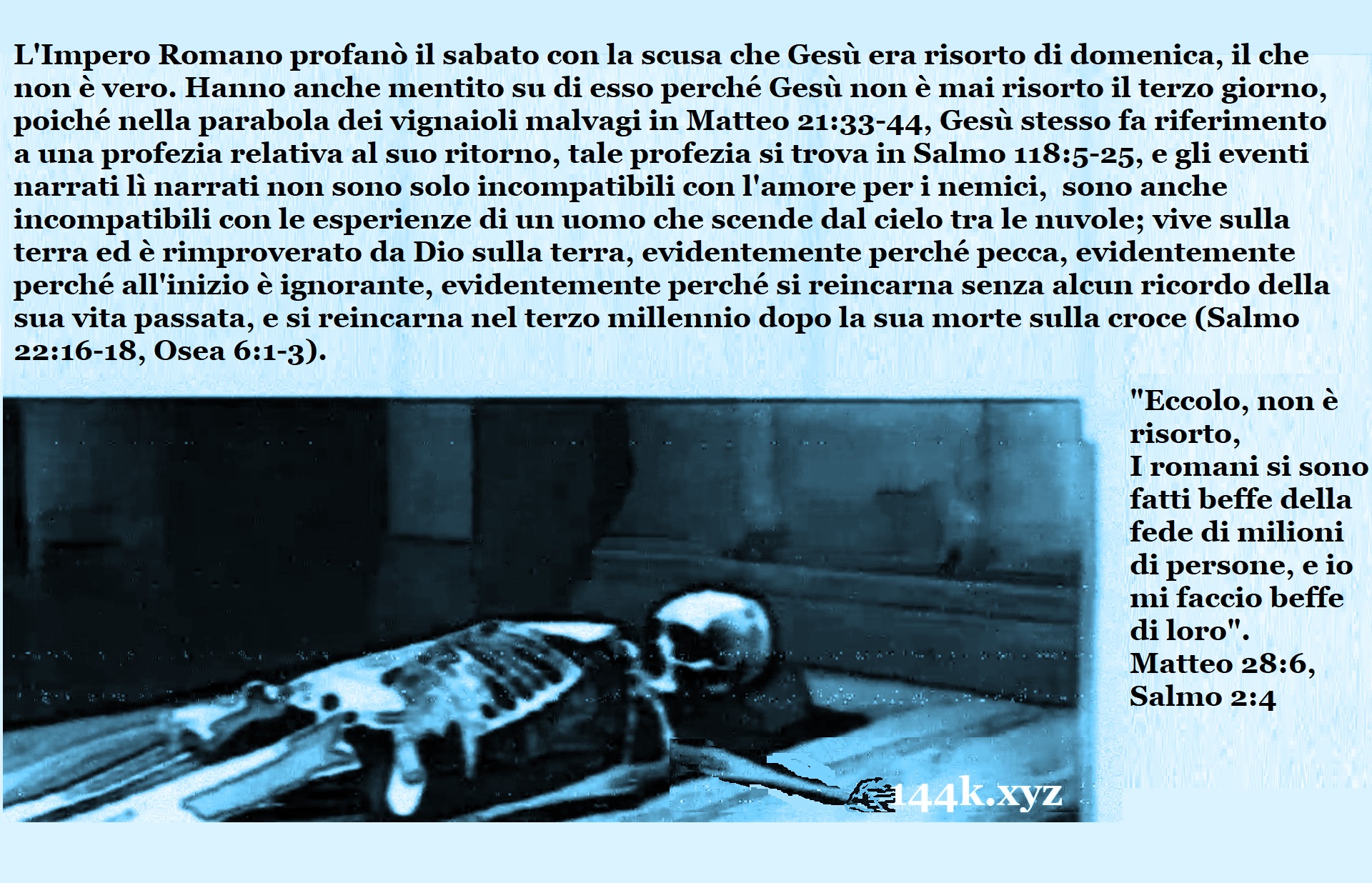 Matteo 28:6 Ecco, non è risuscitato; i romani hanno deriso la fede di milioni… (Lingua video: francese) https://youtu.be/EVd1EDe3fQY
