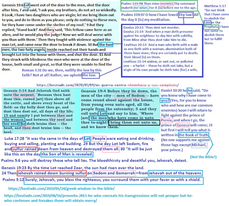 La Bibbia ha alcune parole che sono vere, ma si scopre che anche i falsi profeti chiamano le parole ingannevoli di Roma nella Bibbia «parole ispirate dallo Spirito Santo», il che significa che affermare che la Bibbia contiene falsità è un peccato imperdonabile da parte di Dio, ma violentare i bambini è un peccato perdonabile da parte di Dio. Nella mia lotta contro gli stupratori di bambini, smaschero le bugie nella Bibbia che i falsi profeti usano come scusa per opporsi alla pena di morte per gli stupratori di bambini.