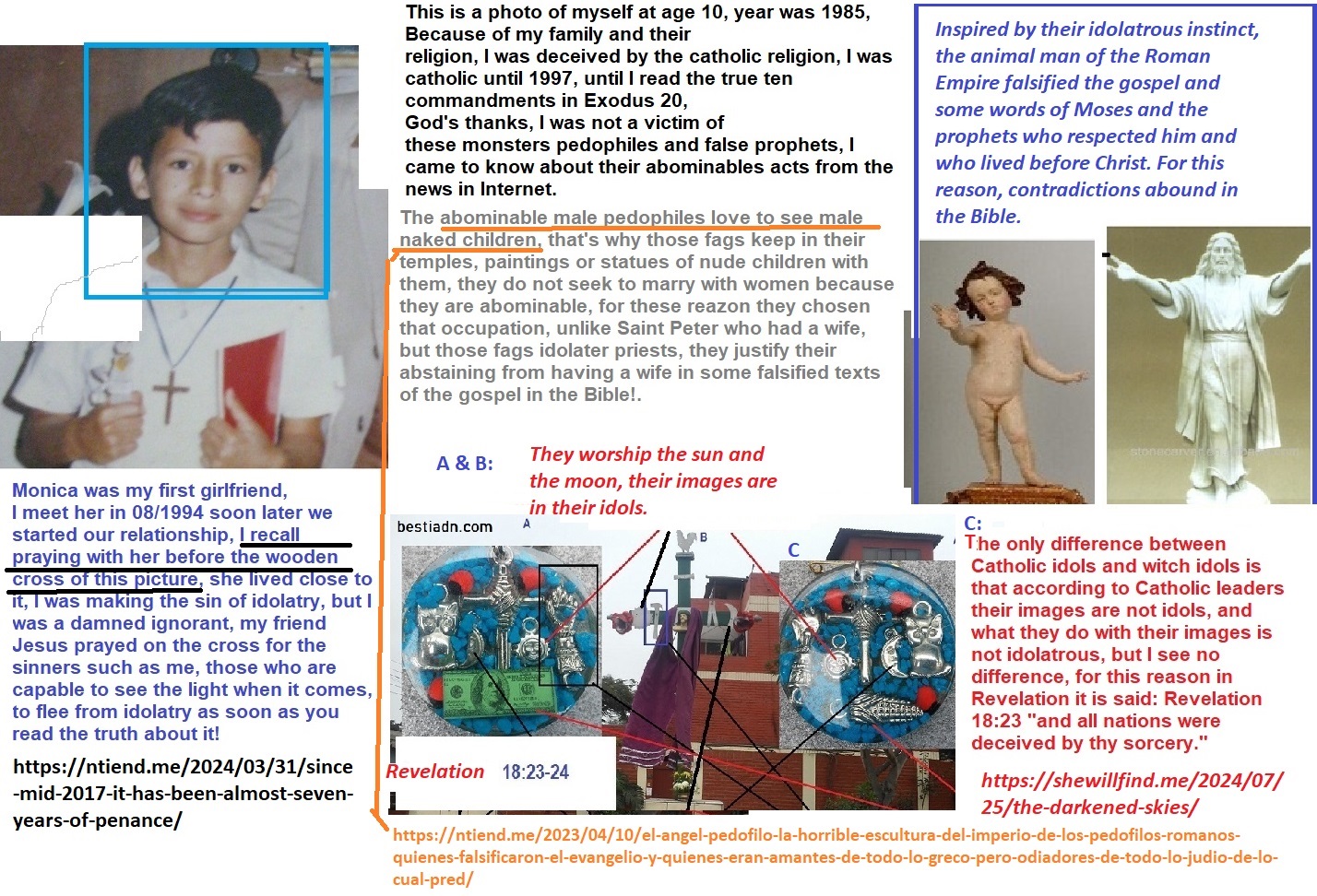 Gabriel: «Go away false Christ, go Satan, I know your intentions, you only want to be close to the children because you are part of an international mafia of pedophiles who advocate impunity for their despicable acts, lying with the story that love for the enemy is an order from God, but I have removed your mask in my blog, bestiadn.com. I do not accept propaganda from Catholics, or Protestants, or Mormons, or Evangelicals, or those who call themselves «Jehovah’s Witnesses», or any group that preaches your Bible, which dictates a rebellion against the just law of God, the law of talion! A rebellion that the true Christ never preached, even if you claim so, because you are Satan, your name says it «You are a slanderer», you invent sins and sinners where there are none to have people submissive to your arbitrary rules with which you seek profit and the opportunity to be close to children, just as your religious people do because they are your children, they are not my people, my people are Lot, my people are Noah, my people are not the abominable enemies of Lot and Noah, to all those abominable enemies of the righteous
