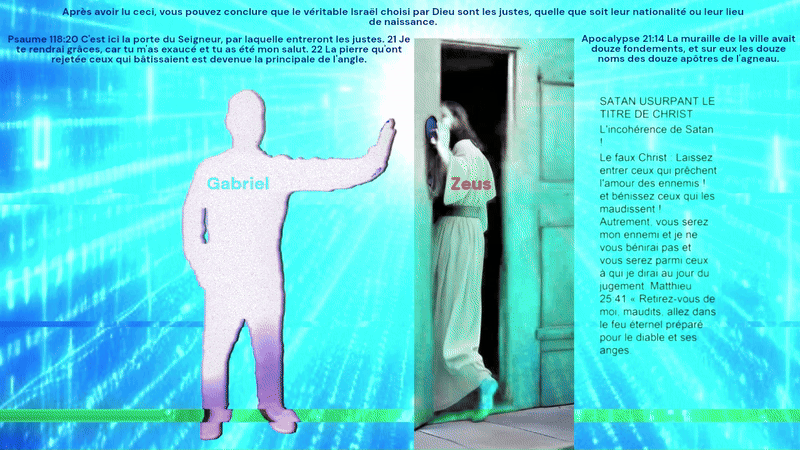 Vous ne verrez jamais Zeus, mais comme le disent les faux prophètes qui l’adorent, Zeus vit en eux, c’est pourquoi toutes les mauvaises choses que vous avez entendues de ses prophètes ont été révélées. Apocalypse 12:10 Alors j’entendis une voix forte dans le ciel qui disait : Maintenant sont venus le salut, la puissance, le royaume de notre Dieu et l’autorité de son Christ. Car celui qui accusait nos frères a été chassé, celui qui les accusait devant notre Dieu jour et nuit. 11 Et ils l’ont vaincu à cause du sang de l’Agneau et à cause de la parole de leur témoignage, et ils ont méprisé leur vie jusqu’à la mort. 12 Réjouissez-vous donc, cieux, et vous qui y habitez. Malheur à vous qui vivez sur terre et dans la mer, car le diable est descendu vers vous avec une grande colère, sachant que son temps est court.