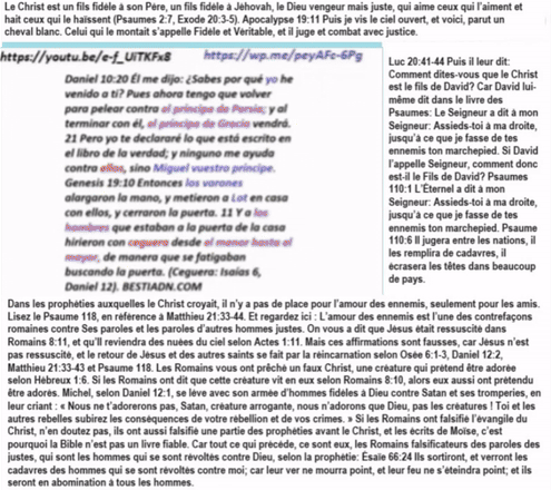 La Bible contient des paroles qui sont vraies, mais il s’avère que les faux prophètes appellent également les paroles trompeuses de Rome dans la Bible « paroles inspirées par le Saint-Esprit », ce qui signifie qu’ils disent que dire que la Bible contient des faussetés est un péché impardonnable par Dieu, mais que violer des enfants est un péché pardonnable par Dieu. Dans mon combat contre les violeurs d’enfants, je dénonce les mensonges de la Bible que les faux prophètes utilisent comme excuse pour s’opposer à la peine de mort pour les violeurs d’enfants.
