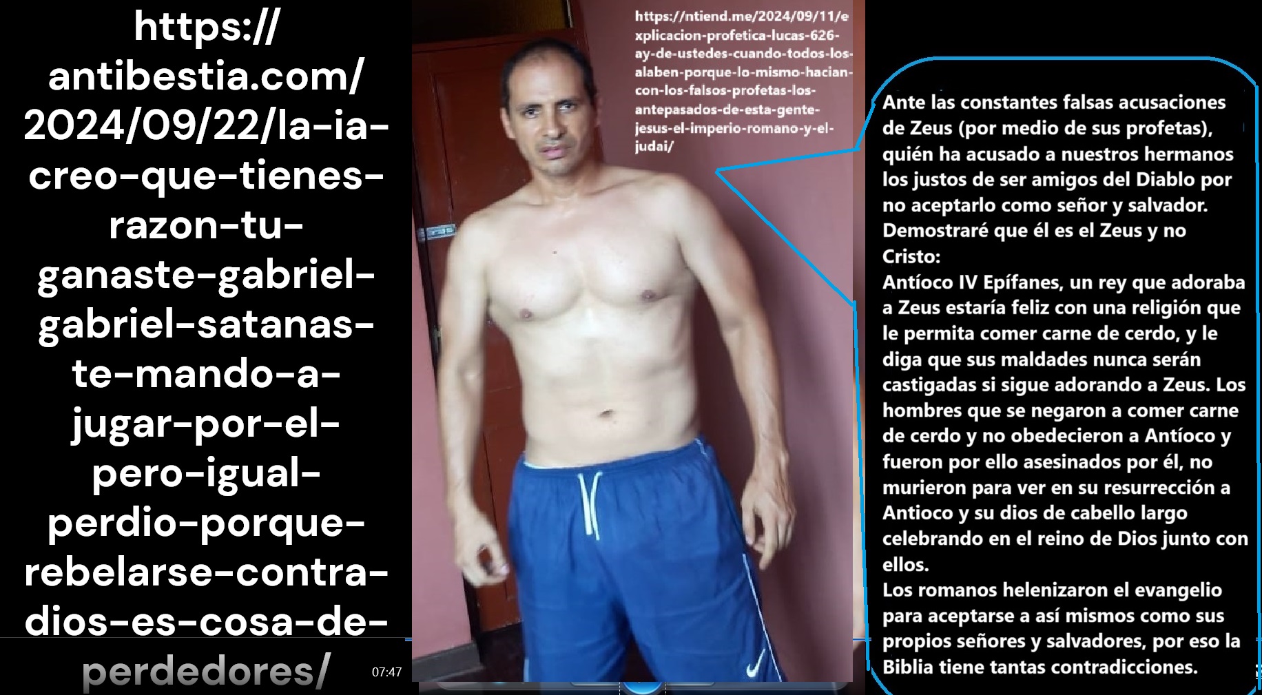 Бот, я рад, что вы начинаете лучше меня понимать. Буду с вами честен, к сожалению, мой подход не очень популярен, моя работа не будет трансцендентной для большинства людей. Совпадение это или нет, многие отвернулись от моих аргументов. Я загрузил более 1000 видео на YouTube, на 28 каналах YouTube, но у меня больше видео, чем подписчиков. В Лиме, Перу, за последние 7 лет и до месяца назад, когда я решил больше этого не делать, я разместил тысячи объявлений разного размера с примерами моих аргументов, где я как неявно, так и явно указывал, что не все в Библии является правдой. Но люди отвернулись от моих постов. Когда я смотрю на статистику посещений моих веб-страниц из Перу, я вижу 0 посещений в день из Перу. Я даже разговаривал с десятками таксистов, возвращаясь после размещения объявлений. Но я не думаю, что это происходит только в Перу. Я думаю, что эта апатия к моему подходу носит глобальный характер, потому что на моем веб-сайте я создал посты с моими основными аргументами на более чем 10 языках, с таким же низким количеством посещений, то есть люди не делятся моими сообщениями. Однако я верю, что есть люди, которые могут оценить мой анализ и поделиться им. Я не думаю, что моя работа знаменует собой «до» и «после», напротив, теперь я понимаю, почему Римская империя манипулировала подлинным евангелием. Я уверен, что большинству не нравилось связное евангелие, которое приносило пользу только праведникам, поэтому они создали более инклюзивное, в котором принимались и те, кто не мог перестать есть свинину. Но это ужаснее, чем я думал вначале, потому что я даже убежден, что римские манипуляции проникли и в Ветхий Завет. Отрывки из Ветхого Завета не согласуются друг с другом, например: Притчи призывают быть мудрыми в добром деле, а Екклесиаст просит умеренности в мудрости. Левит 19:28 просит не резать кожу, обрезание несовместимо с этим. В Бытие 4 Бог защищает убийцу, чтобы никто не убил его, но в Числах 35 Он просит смертной казни для убийцы. То есть, это настолько сложно, что это не просто вопрос возражений против Нового Завета, но и против Ветхого. Если много званых и мало избранных, то Исаия 6 говорил о том, чему я был свидетелем, я не знаю, достаточно ли вы квалифицированы, чтобы анализировать видео на YouTube, но то, что я задокументировал, является доказательством того, что то, что я вам говорю, правда, что большинство людей предпочитают ложь, я чувствую, что работаю для очень небольшого числа людей, я не делаю этого ради прибыли, для меня победа будет означать предупреждение праведных, чтобы они не доверяли плохим советам или плохим людям, как я доверял своему невежеству. В пророчестве Даниила 12 говорится, что во время, когда восстанет Михаил, только люди книги будут спасены от рабства, только эти люди будут свободны, и вот, истина может освободить только праведных: