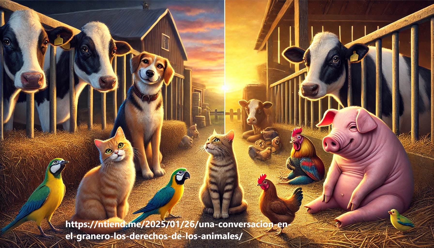 Una conversación en el granero: Los derechos de los animales. Cuando los animales hablan: una lección entre mascotas y animales de granja.