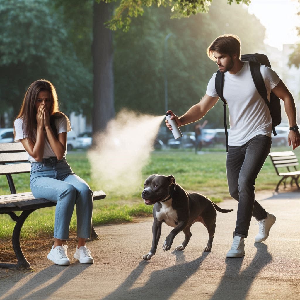 Corrió, se interpuso entre el animal y la mujer, y con buen pulso roció al pitbull justo a tiempo. El perro chilló y se alejó corriendo, confundido.