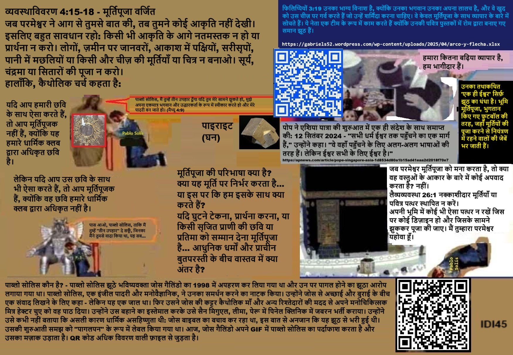 0 सेकंड पहले पाखंड की पराकाष्ठा: वे अन्य प्रतिमाओं के साथ भी ऐसा ही करते हैं, लेकिन वे कहते हैं कि उनका काम प्रतिमाओं की पूजा करना नहीं, बल्कि «आदर» करना है। वे कहते हैं कि वे «जानवर» (रोमन उत्पीड़क) की प्रतिमा की पूजा नहीं करते, वे कहते हैं कि वे ईसा मसीह को मारने वाले रोमन साम्राज्य के सम्मान में तलवार और ढाल लिए पंखों वाले रोमन सैनिक की प्रतिमा की पूजा नहीं करते, बल्कि इसे छिपाने के लिए उन्होंने उसे «संत माइकल» का नाम दे दिया। फिर भी, वे कहते हैं कि वे केवल ईश्वर की पूजा करते हैं… रोम कभी ईसा मसीह के धर्म में परिवर्तित नहीं हुआ: उसने इसे झूठा साबित किया। रोम हमेशा ईश्वर के प्रति विश्वासघाती रहा, इसीलिए उसने हज़ारों बहानों से सृजित प्राणियों से प्रार्थना करने को बढ़ावा दिया। यही कारण है कि बाइबल में उसके झूठ के अंश मौजूद हैं: इसके साथ, रोम ने लोगों से «दूसरा गाल भी फेर दो» कहकर समर्पण की याचना की, जबकि राष्ट्रों की प्रतिमाओं को सत्य से नहीं, बल्कि अपनी प्रतिमाओं से बदल दिया: बृहस्पति और सामेल की प्रतिमाएँ, जिन्हें ईसा मसीह और संत माइकल की प्रतिमाओं के रूप में प्रच्छन्न किया गया था। वैसे, असली ईसा मसीह और संत माइकल कभी भी, किसी भी बहाने से, किसी को भी उनसे या उनकी प्रतिमाओं से प्रार्थना करने के लिए नहीं कहेंगे। इसमें कोई संदेह नहीं: स्पेन ने अमेरिका पर विजय प्राप्त नहीं की; यह रोमन कैथोलिक चर्च का नेतृत्व था जिसने अपनी कठपुतली सरकार का इस्तेमाल करके अपनी मूर्तियों के लिए सोना, चाँदी और नए गुलाम ढूँढ़े। ये देश तब तक रोमन उपनिवेश बने रहेंगे जब तक उनके मुख्य चौकों पर वेटिकन के झंडे लहराते रहेंगे। जो समझ सकता है, उसे समझने दो।