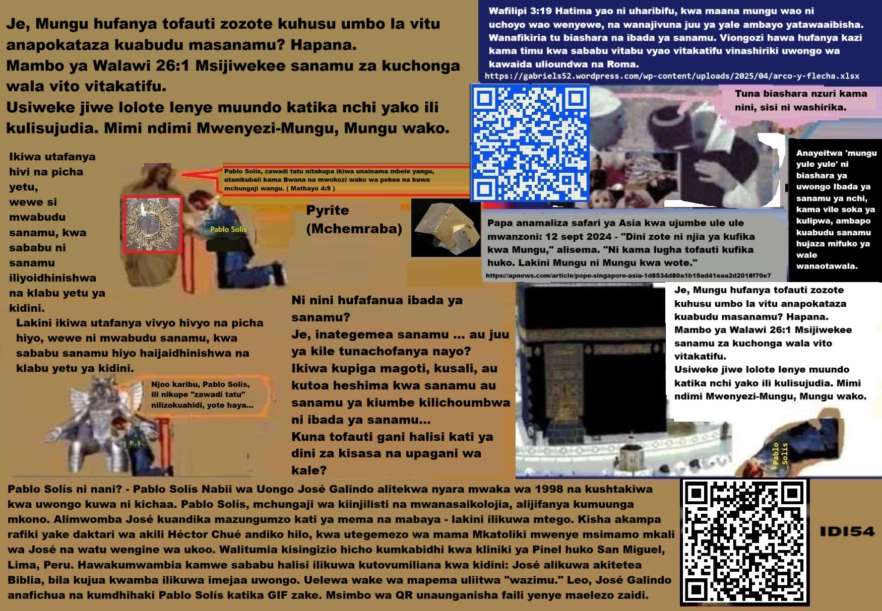 Dakika 2 zilizopita (yamehaririwa) Unafiki bora kabisa: Wanasema hawaabudu sanamu, wanaziheshimu tu. Wanakana kumwabudu mnyama (mtesi Mroma), lakini wanasali kwa sanamu ya askari wa Kirumi mwenye mabawa na upanga na ngao. Ili kuficha hilo, wanamwita “Mtakatifu Mikaeli.” Rumi haikukubali kamwe imani ya Yesu: iliipotosha. Ilibadilisha sanamu za watu na kuwa zake—Jupiter na Samael waliojigeuza kuwa Yesu na Mtakatifu Mikaeli—huku ikilazimisha utii kwa maneno kama “geuza shavu lingine.” Yesu na Mikaeli wa kweli hawangeomba kamwe kuombewa, si kwao wala kwa sanamu zao. Haikuwa Uhispania iliyoiteka Amerika: ilikuwa ni uongozi wa Kirumi, ukitumia wafalme vibaraka kupora dhahabu, fedha, na watumwa kwa sanamu zao. Na hadi leo, bendera za Vatikani katika viwanja vya gwaride zinatukumbusha kwamba zimesalia kuwa koloni la Roma, na watawala wa wakala ambao wanaapa katiba zao kwenye kitabu cha Roma. Anayeweza kuelewa na aelewe.