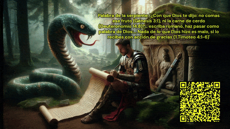 Palabra de la serpiente a la mujer: ‘¿Con que Dios te dijo: no comas ese fruto? Nada de lo que Dios hizo es malo, si lo recibes con acción de gracias…, come también la carne de cerdo.’
