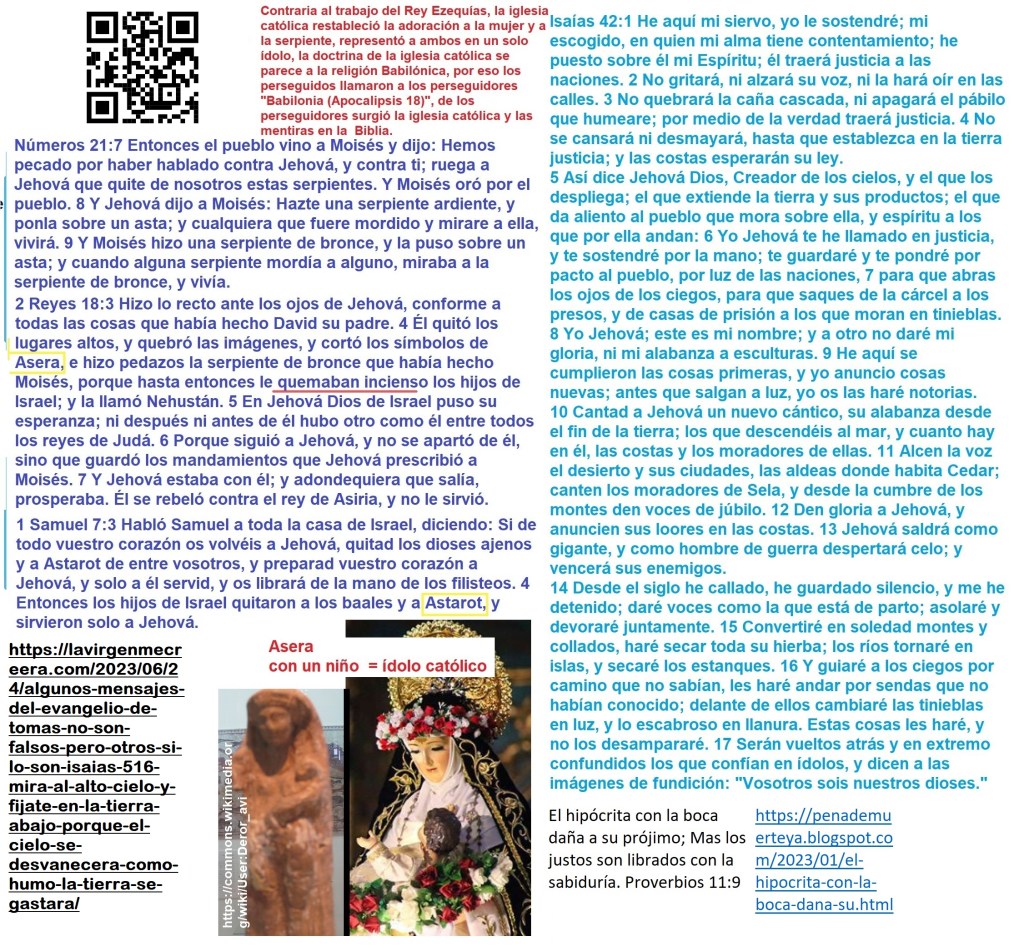 Cometí el error de defender la fe en la Biblia, pero por ignorancia. Sin embargo, ahora veo que no es el libro guía de la religión que Roma persiguió, sino de la que creó para complacerse con el celibato. Por eso predicaron un Cristo que no se casa con una mujer, sino con su iglesia, y ángeles que, a pesar de tener nombres masculinos, no parecen hombres (saca tus propias conclusiones). Estas figuras son afines a los falsos santos, besadores de estatuas de yeso, y similares a los dioses grecorromanos, porque, en realidad, son esos mismos dioses paganos con otros nombres.