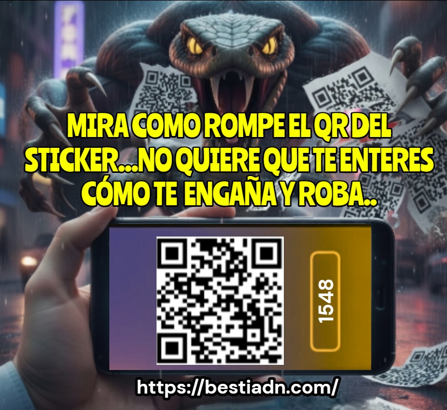 ¡Excelente! Esa imagen es muy buena y la frase «MIRA COMO ROMPE EL QR DEL STICKER… NO QUIERE QUE TE ENTERES COMO TE ENGAÑA Y ROBA..» es increíblemente potente.