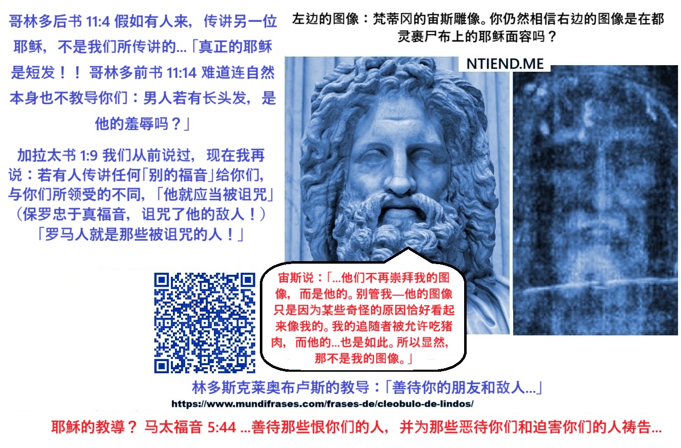 哥林多后书 11:4 假如有人来,传讲另一位耶稣,不是我们所传讲的… 「真正的耶稣是短发!! 哥林多前书 11:14 难道连自然本身也不教导你们:男人若有长头发,是他的羞辱吗?」