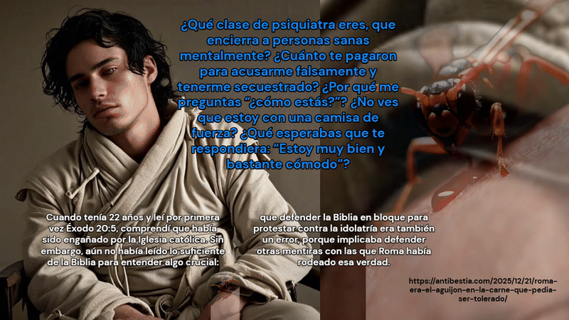 Cometí el error de defender la fe en la Biblia, pero por ignorancia. Sin embargo, ahora veo que no es el libro guía de la religión que Roma persiguió, sino de la que creó para complacerse con el celibato. Por eso predicaron un Cristo que no se casa con una mujer, sino con su iglesia, y ángeles que, a pesar de tener nombres masculinos, no parecen hombres (saca tus propias conclusiones). Estas figuras son afines a los falsos santos, besadores de estatuas de yeso, y similares a los dioses grecorromanos, porque, en realidad, son esos mismos dioses paganos con otros nombres.